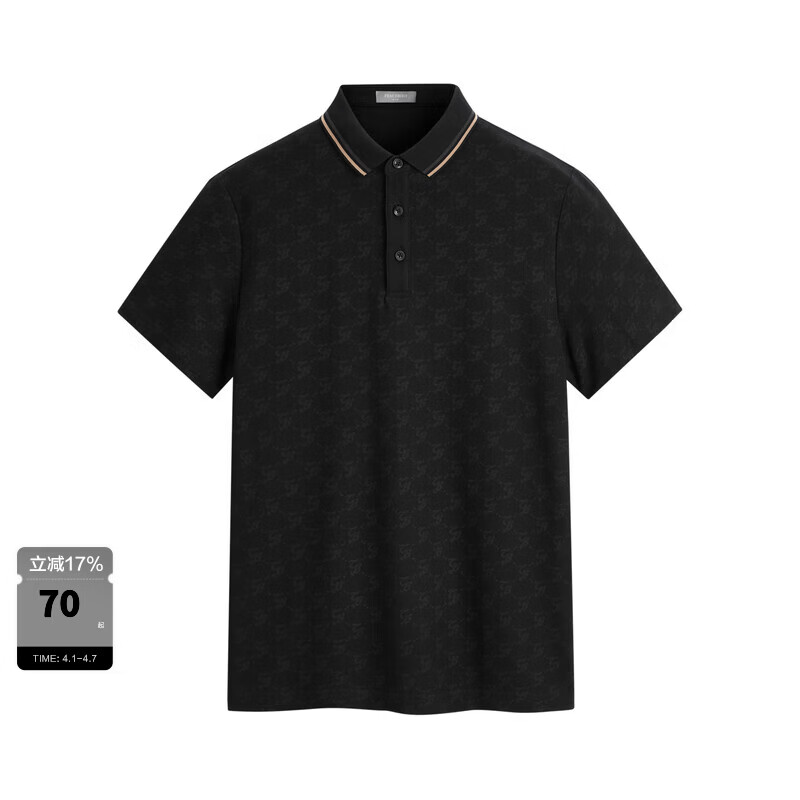 旗舰店太平鸟男装 夏季男士Polo衫B1DBD2138 黑色(修身) S