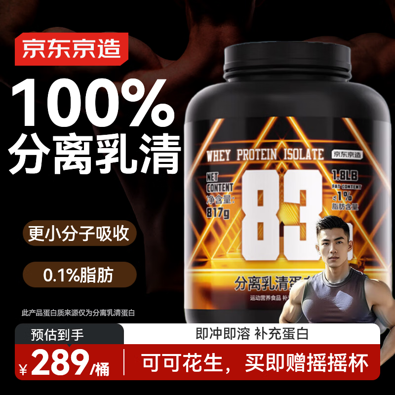 自营京东京造分离乳清蛋白粉83.9%高蛋白含量增肌蛋白粉817g花生巧克力味1.8磅